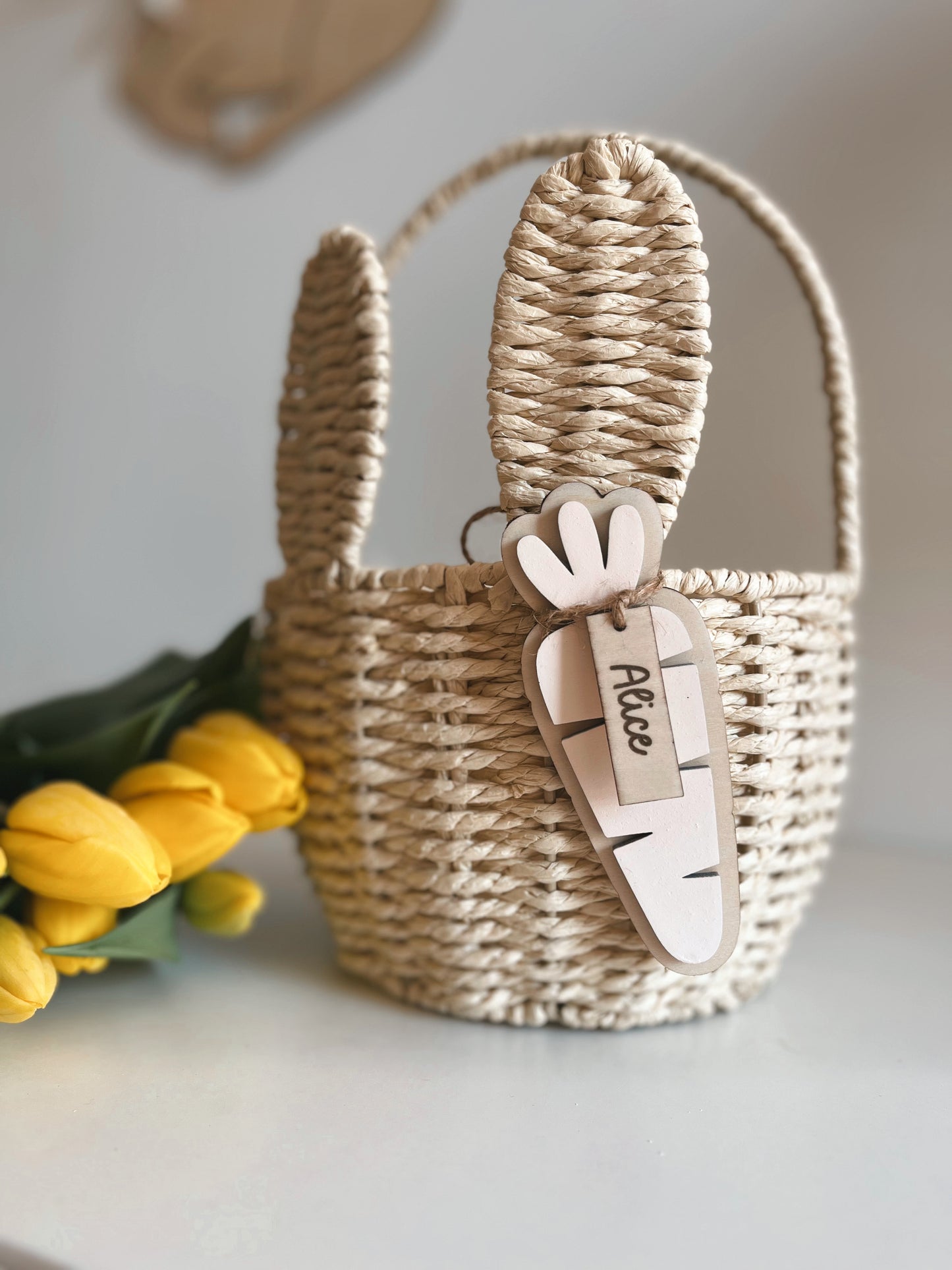 Décorez votre panier de Pâques pour la chasse aux œufs ou votre table en guise de marque place avec ce lapin personnalisé en bois gravé.