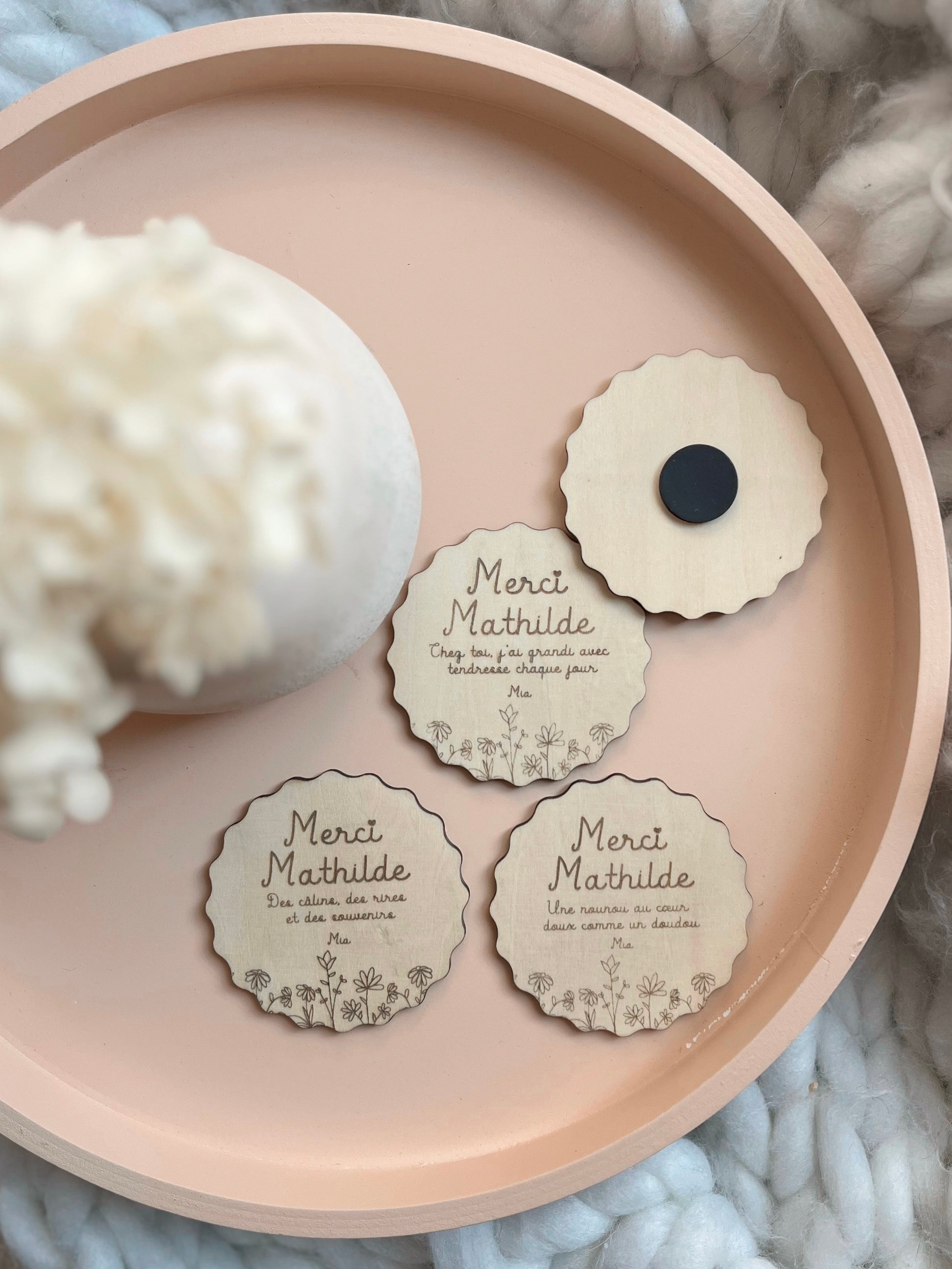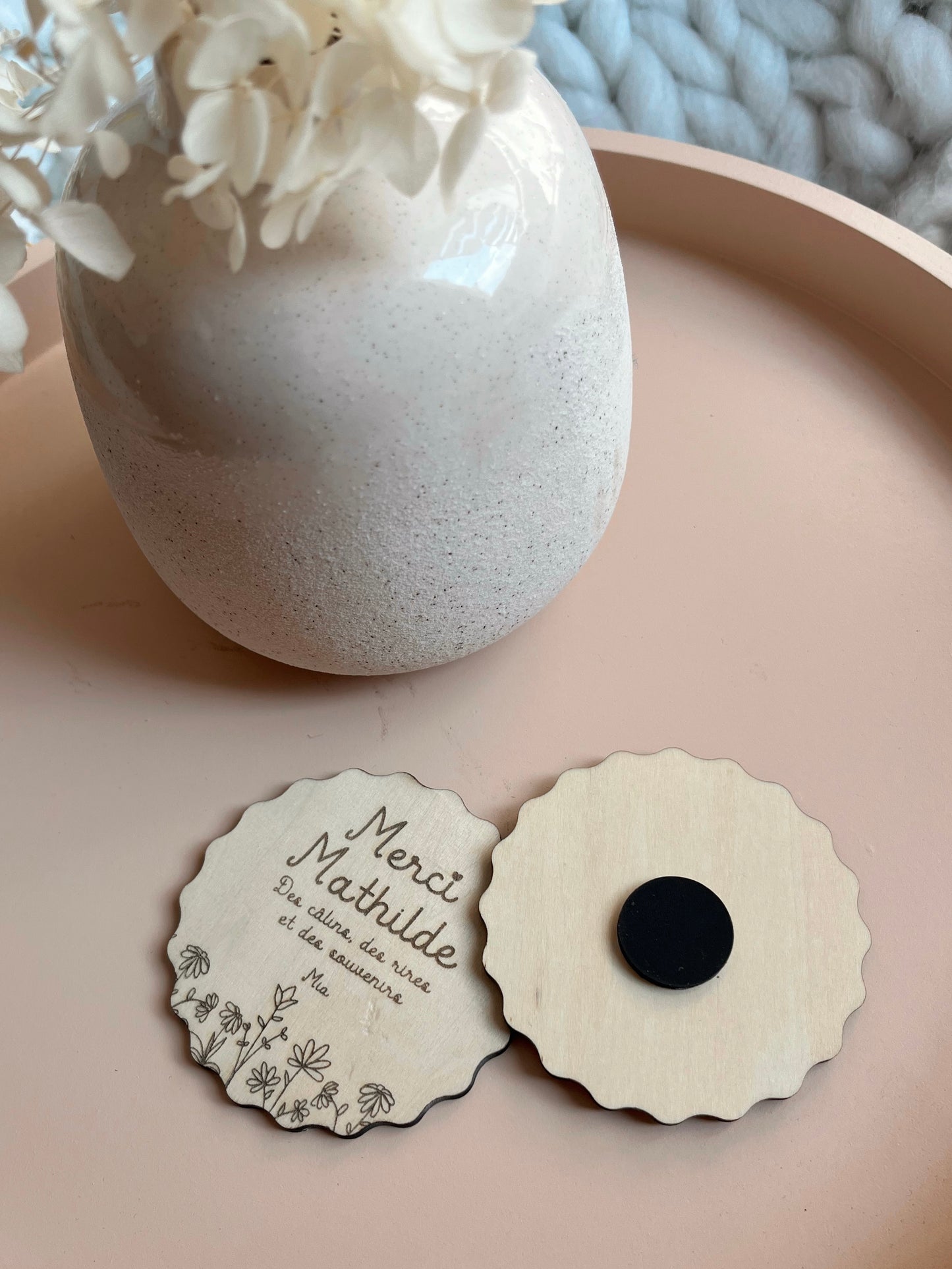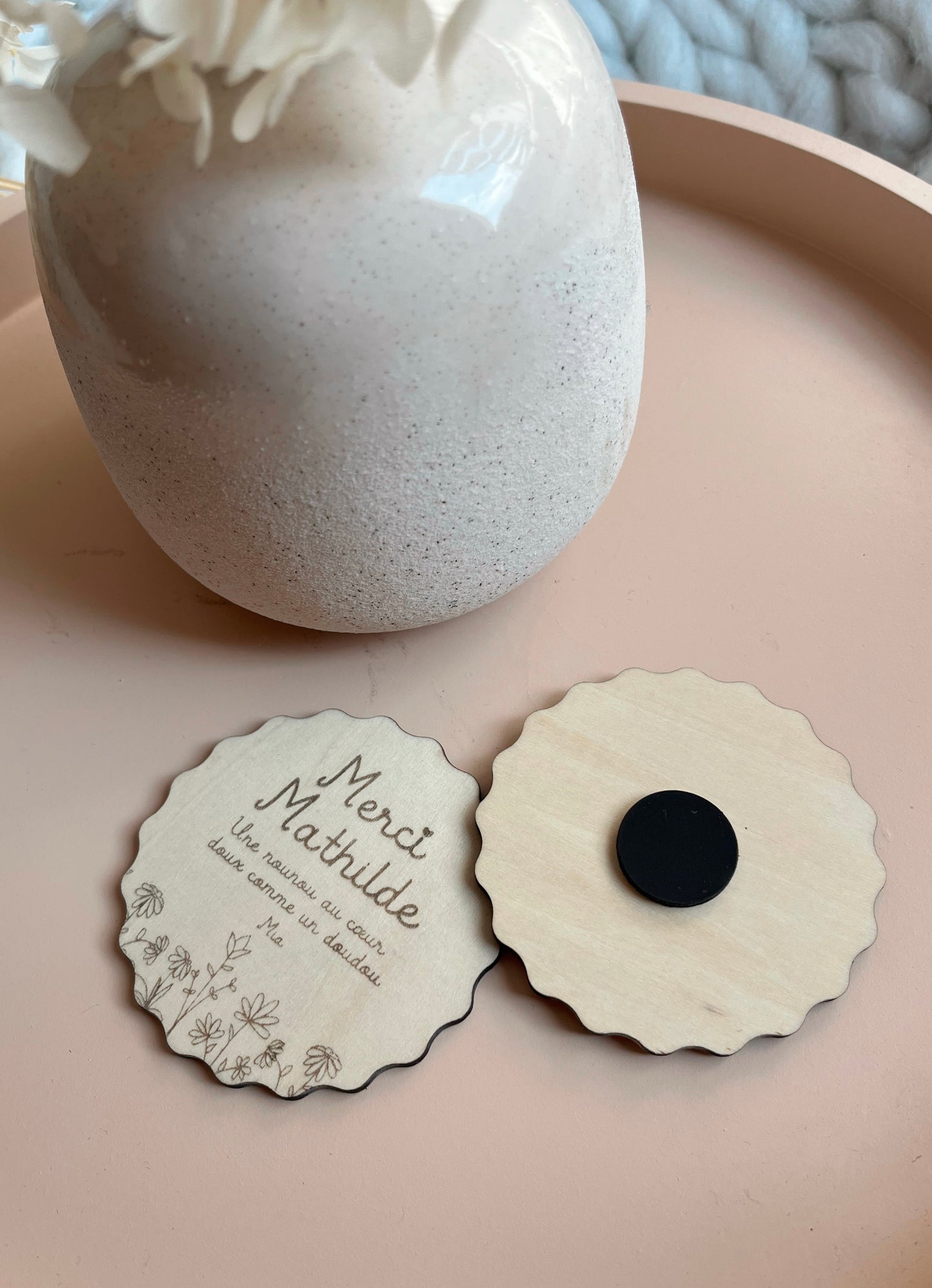Magnet bois personnalisé "Merci Nounou" – Cadeau de fin de garde