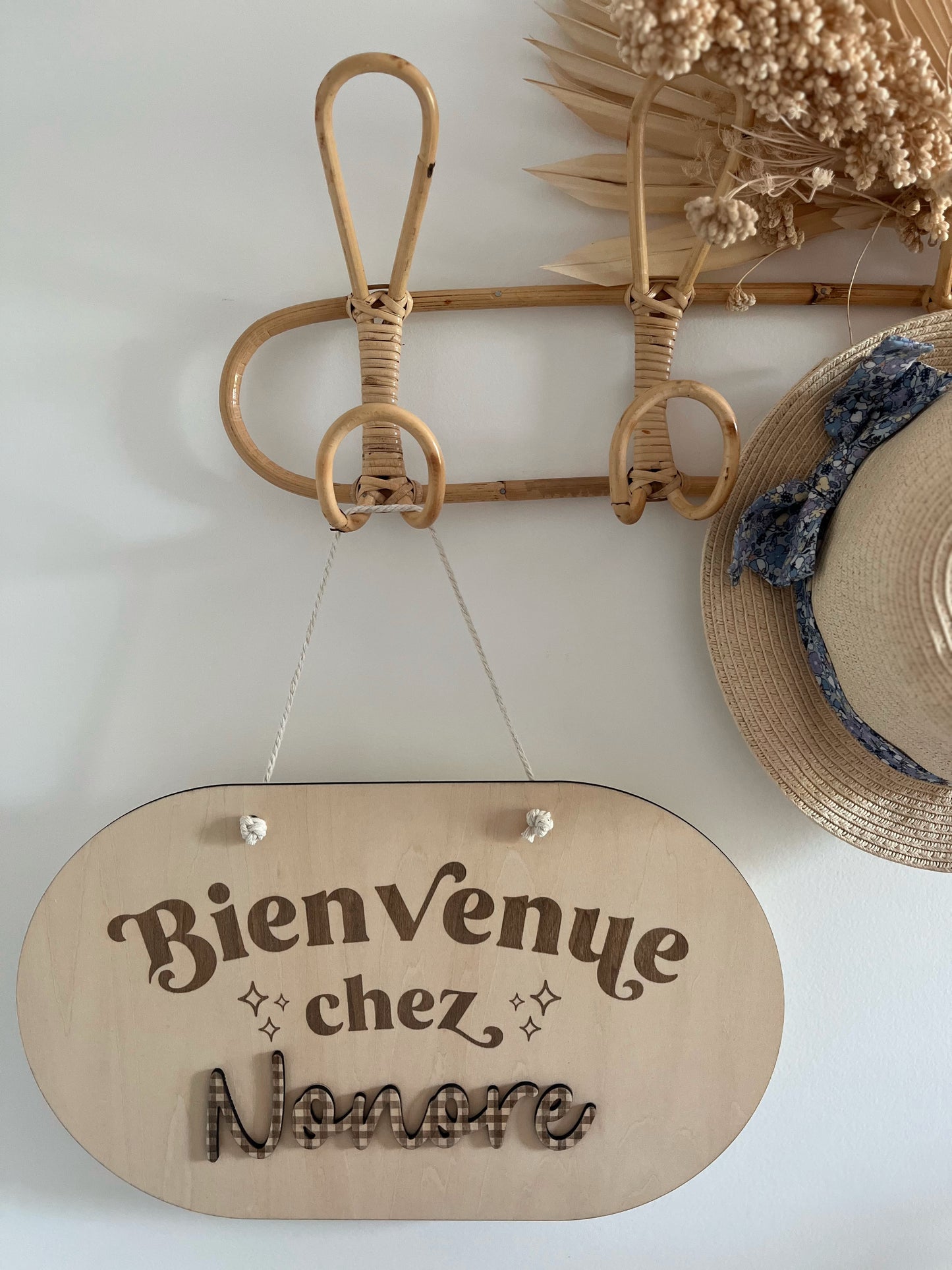 Le bois étant un matériau naturel, sa teinte peut varier, parfois plus claire, parfois plus foncée, notamment au niveau de la gravure. Il peut également présenter des nœuds et des veinures, ce qui lui confère tout son charme. Ainsi, avant de passer commande, veuillez noter que chaque création sera unique et pourra légèrement différer des photos présentées.