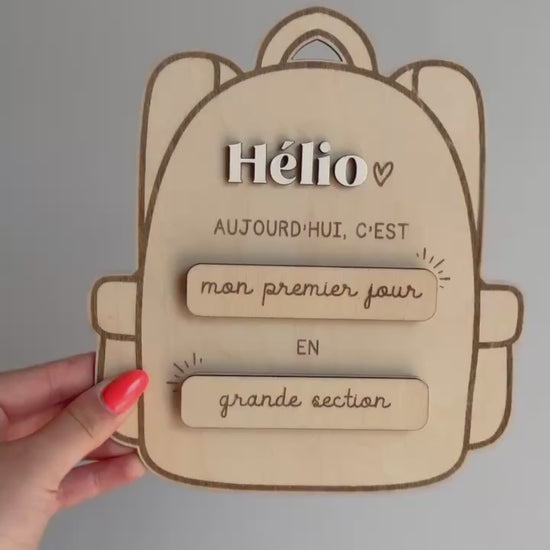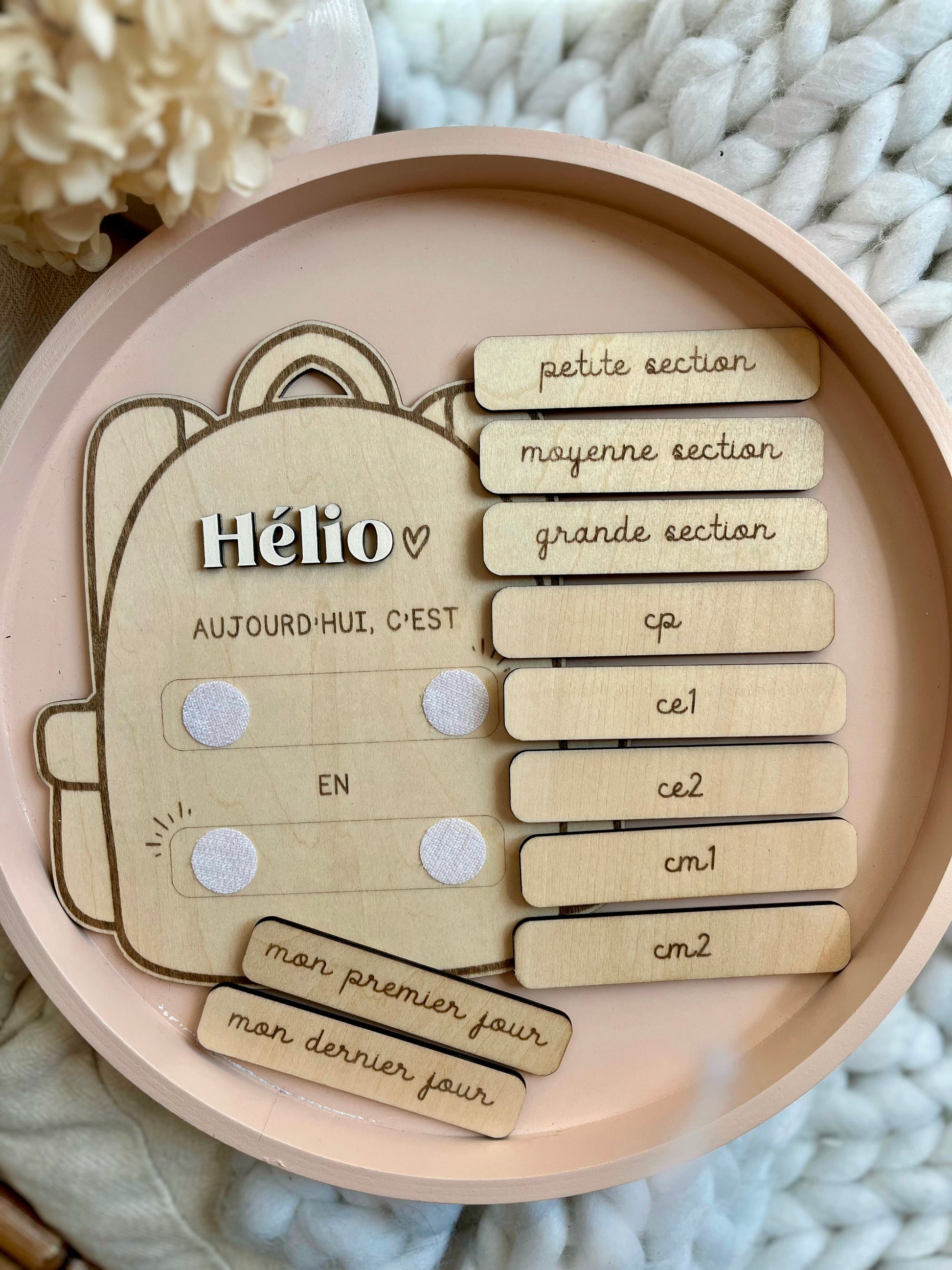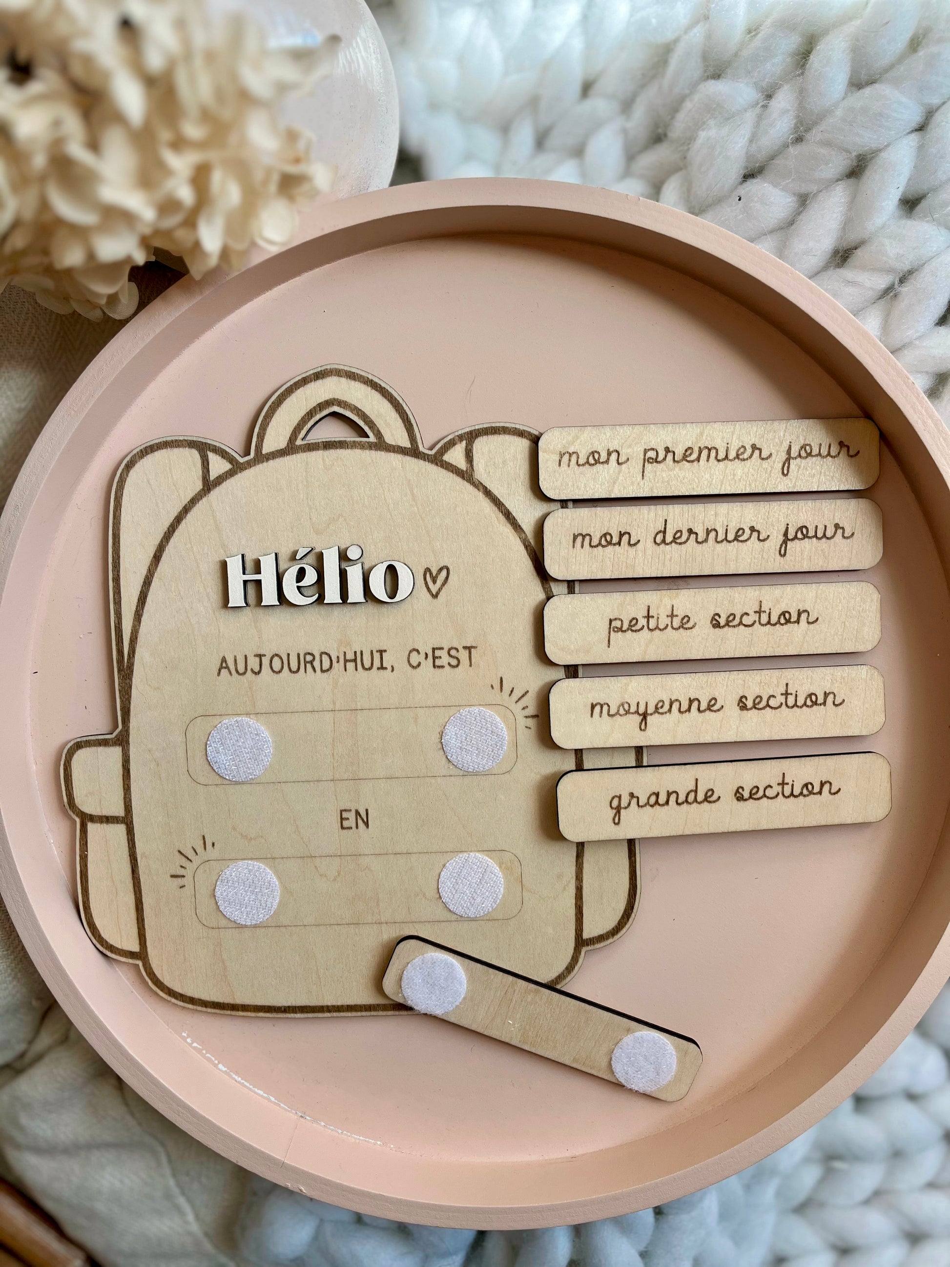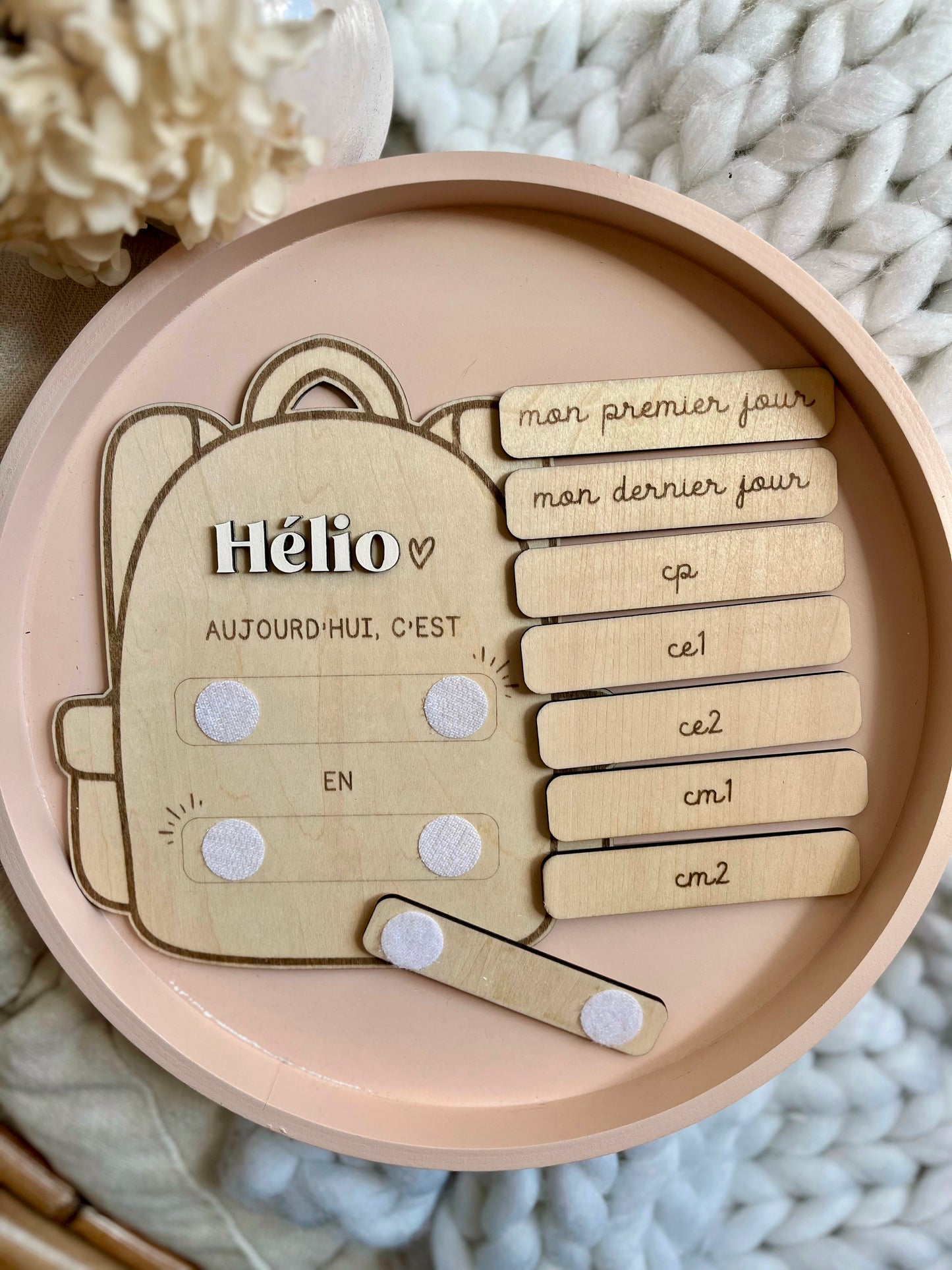 Grâce à ses étiquettes en bois interchangeables à scratchs, passez facilement de "Mon premier jour" à "Mon dernier jour", et choisissez le pack de votre choix de la crèche, maternelle au CM2.