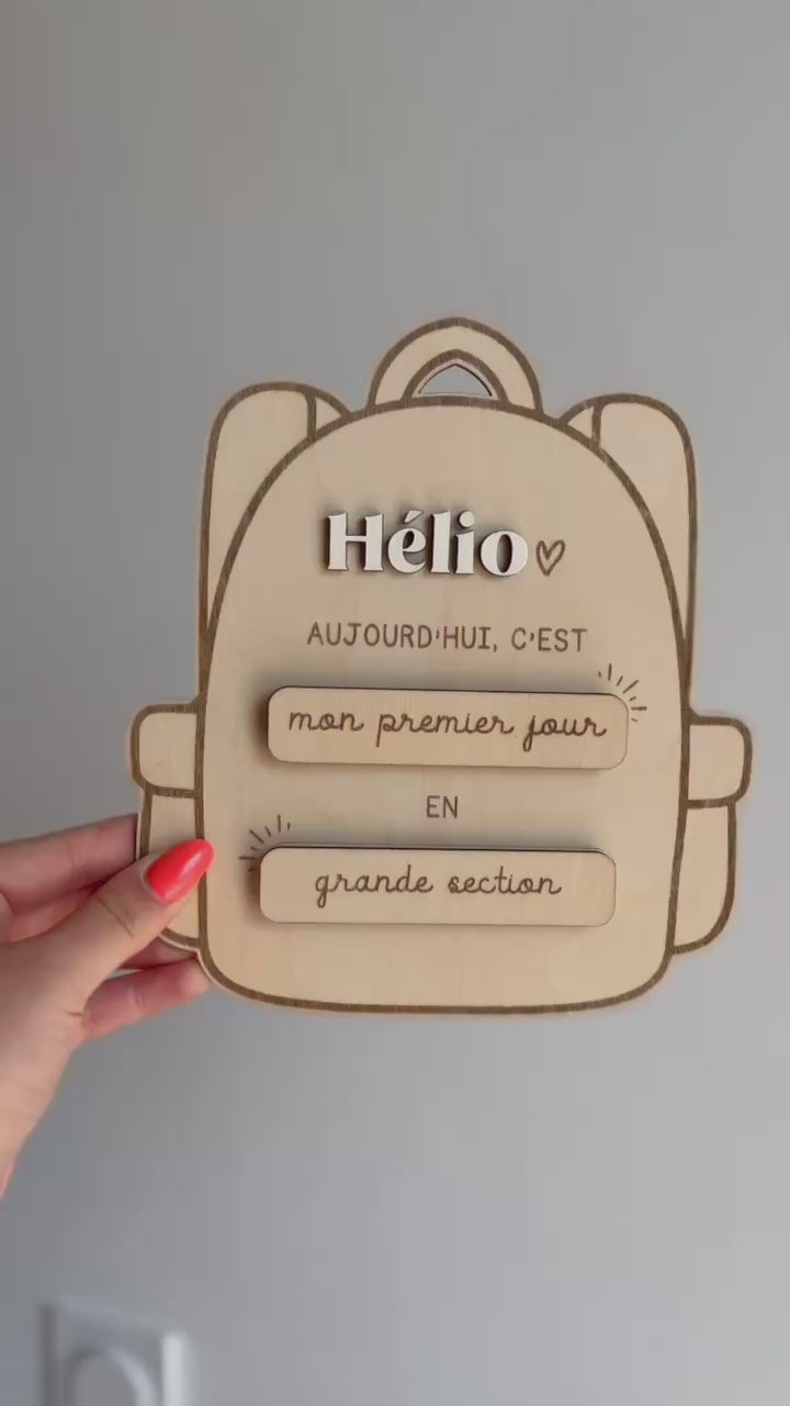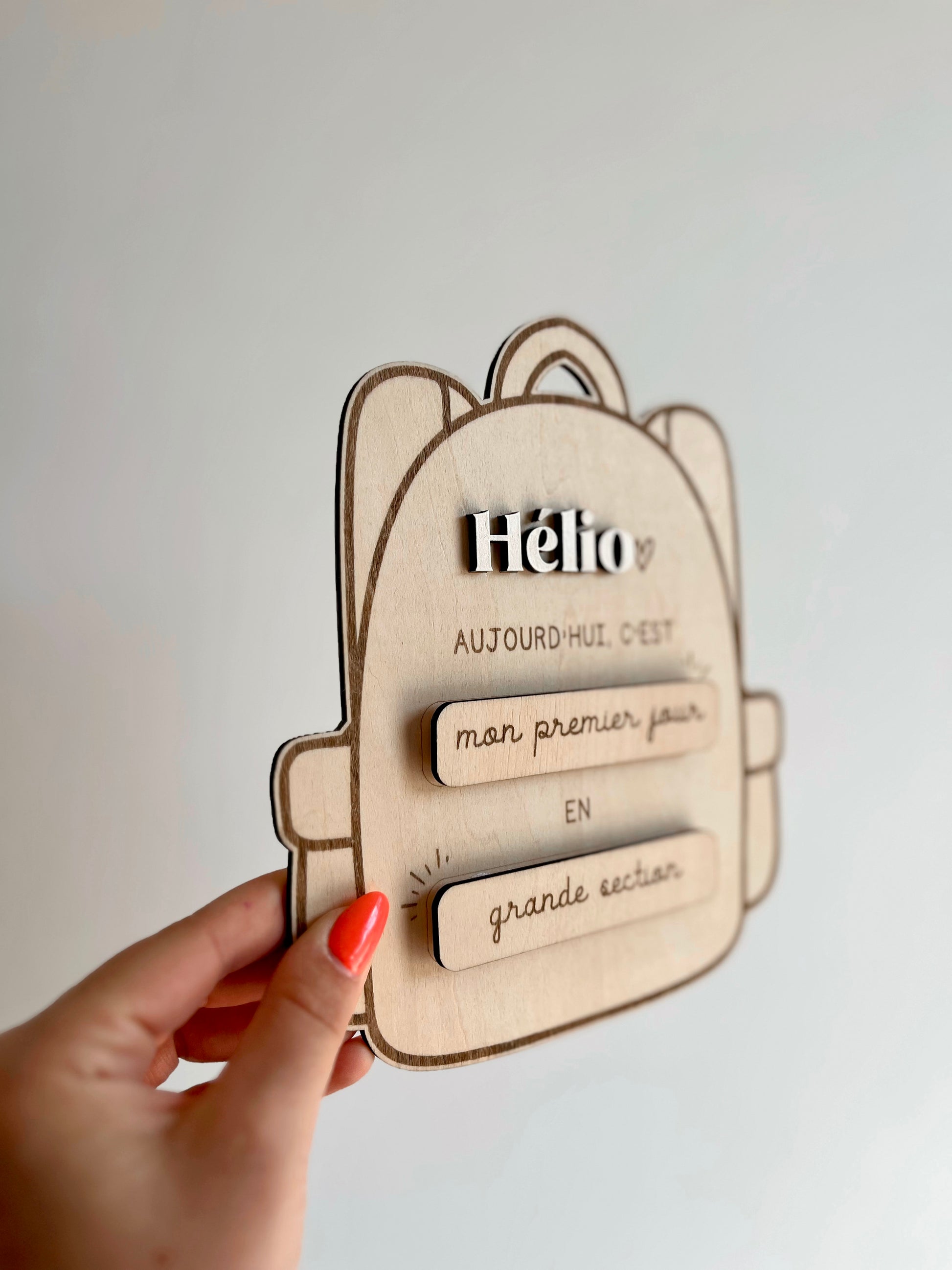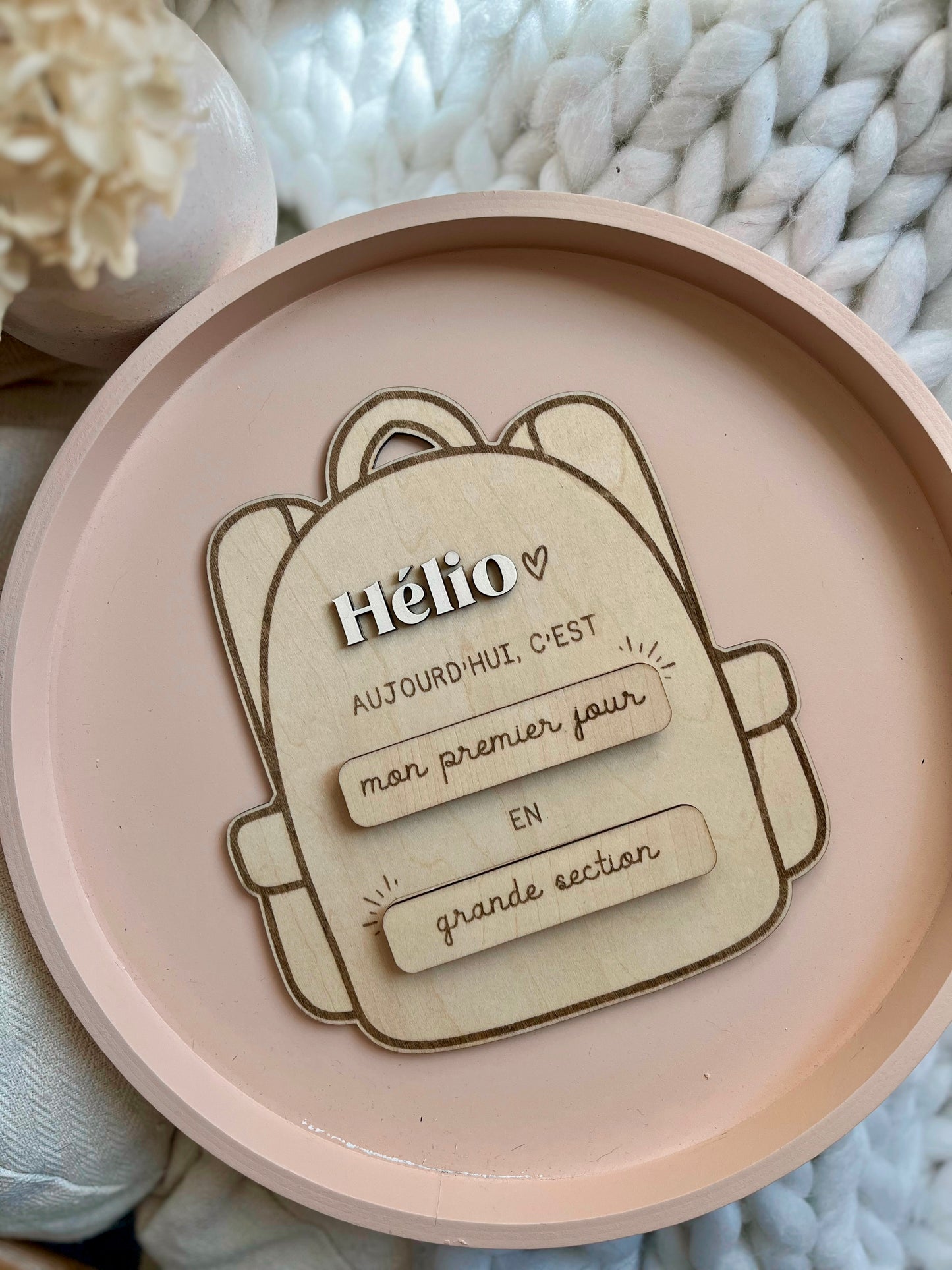 Immortalisez les premiers et derniers jours d’école ou de crèche de votre enfant avec ce superbe panneau de rentrée scolaire en bois personnalisé ! En forme de cartable, il affiche le prénom en relief blanc crème pour une touche élégante et unique.